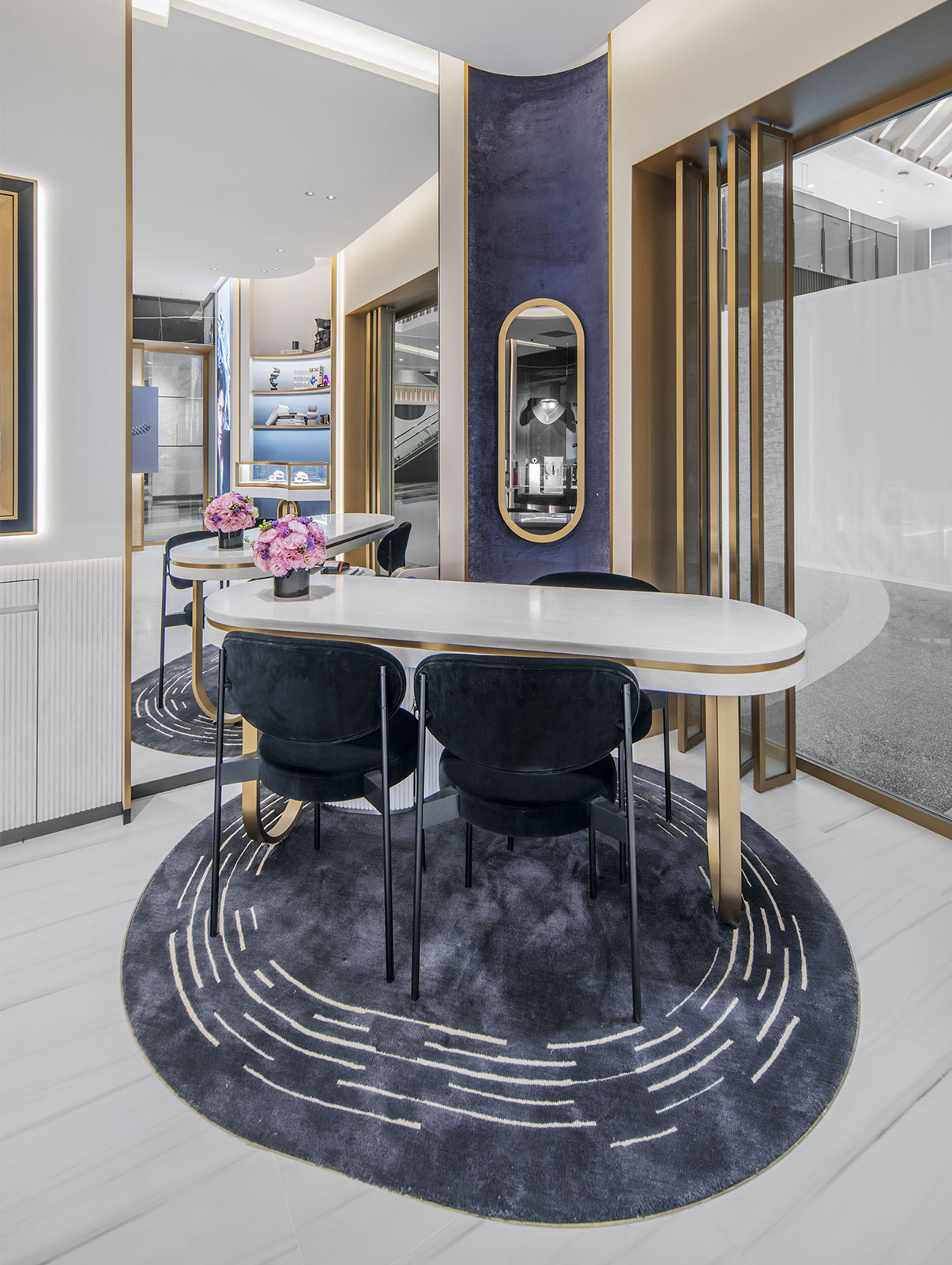 全新专卖店由Valérie Messika负责设计,风格优雅现代。黑色、金色与白色交织相融,淋漓演绎品牌传统。弧形空间设计与经典Move细节遥相呼应。镜面、玻璃和大理石与钻石珠宝的璀璨光芒相映成辉,令顾客瞬时沉浸于动人的Messika梅西卡和珠宝世界中。